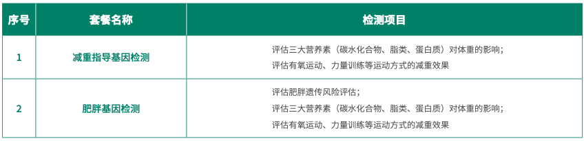 悅享譜TM纖體養(yǎng)護(hù)基因檢測(cè)通過(guò)檢測(cè)人體與肥胖發(fā)生相關(guān)的基因,評(píng)估肥胖發(fā)生的遺傳風(fēng)險(xiǎn),飲食中不同的營(yíng)養(yǎng)成分對(duì)體重的影響、不同的運(yùn)動(dòng)方式對(duì)減重效果的影響,并根據(jù)檢測(cè)結(jié)果提供個(gè)性化飲食建議、運(yùn)動(dòng)減重方式建議,從而達(dá)到有效預(yù)防肥胖、科學(xué)減重的目的。