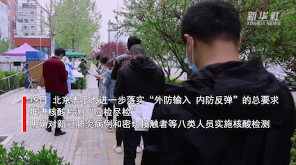記者了解到,為進一步落實“外防輸入、內(nèi)防反彈”的總要求,推進核酸檢測應(yīng)檢盡檢,北京疫情防控領(lǐng)導(dǎo)小組明確對八類人員實施核酸檢測。伴隨復(fù)工復(fù)產(chǎn)的持續(xù)推進和入住酒店的相關(guān)要求,越來越多的人面臨核酸檢測需要。