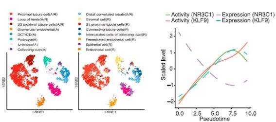 圖6 細(xì)胞群預(yù)測(cè)(左) 圖7 轉(zhuǎn)錄調(diào)控機(jī)制(右)