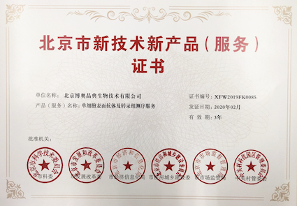 “北京市新技術(shù)新產(chǎn)品(服務(wù))認(rèn)定”旨在推動高新技術(shù)產(chǎn)業(yè)的發(fā)展,作為北京市新技術(shù)新產(chǎn)品,應(yīng)擁有自主知識產(chǎn)權(quán),并具有技術(shù)先進性和創(chuàng)新性。本次喜獲“單細(xì)胞表面抗體及轉(zhuǎn)錄組測序服務(wù)”榮譽證書是各委員會對博奧晶典單細(xì)胞產(chǎn)品及服務(wù)創(chuàng)新能力的肯定,同時體現(xiàn)了博奧晶典單細(xì)胞產(chǎn)品服務(wù)在行業(yè)內(nèi)的技術(shù)優(yōu)勢。