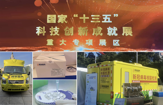 展覽多維度、全方位地展示了中國科技實(shí)力躍升嶄新臺階,精選、優(yōu)選了一批重大標(biāo)志性科技成果,既有國之重器,又有惠及民生的創(chuàng)新產(chǎn)品。作為科技賦能抗疫的“排頭兵”,在本次國家“十三五”創(chuàng)新成就展的科技抗疫展區(qū),博奧晶典攜呼吸道多病毒核酸檢測芯片系統(tǒng)、新型冠狀病毒2019-nCoV核酸檢測試劑盒(全集成碟式芯片法)、車載新冠病毒核酸檢測移動實(shí)驗(yàn)室驚艷亮相。