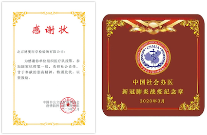疫情期間,博奧晶典獲評(píng)“清華大學(xué)抗擊新冠肺炎疫情先進(jìn)集體”、博奧晶典黨支部也榮獲“清華大學(xué)先進(jìn)黨組織(黨支部)”稱號(hào);中國(guó)非公立醫(yī)療機(jī)構(gòu)協(xié)會(huì)向博奧晶典旗下博奧檢驗(yàn)援鄂醫(yī)療隊(duì)頒發(fā)感謝狀及紀(jì)念章;博奧晶典榮獲華夏時(shí)報(bào)“2020年度企業(yè)社會(huì)責(zé)任先鋒獎(jiǎng)”、南方醫(yī)學(xué)網(wǎng)、基因谷、早篩網(wǎng)“2021基因檢測(cè)行業(yè)年度抗疫英雄企業(yè)”等榮譽(yù)稱號(hào)。