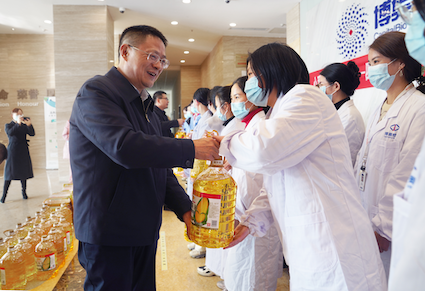 王誠(chéng)董事長(zhǎng)把慰問(wèn)物品遞到大家手中,并送上誠(chéng)摯的新春祝福。他對(duì)大家在過(guò)去一年里攻堅(jiān)克難、勤奮工作,為博奧生物、四川能投創(chuàng)造的業(yè)績(jī),特別是為抗擊疫情所做的貢獻(xiàn)給予充分肯定,勉勵(lì)大家在新的一年再接再厲、乘勢(shì)而上,再創(chuàng)新佳績(jī)。