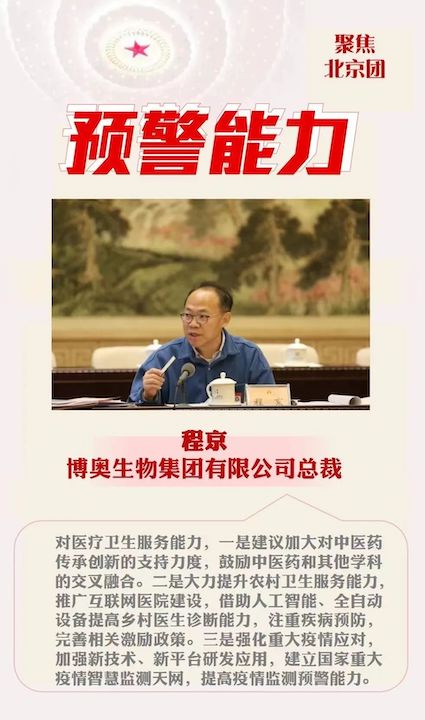 在調(diào)研過程中,程京代表了解到,隨著經(jīng)濟(jì)社會(huì)發(fā)展、收入水平的提高,廣大群眾越來越重視疾病的預(yù)防。程京代表提出建議:建“治未病”國(guó)家體系,保人民健康和國(guó)家強(qiáng)盛。