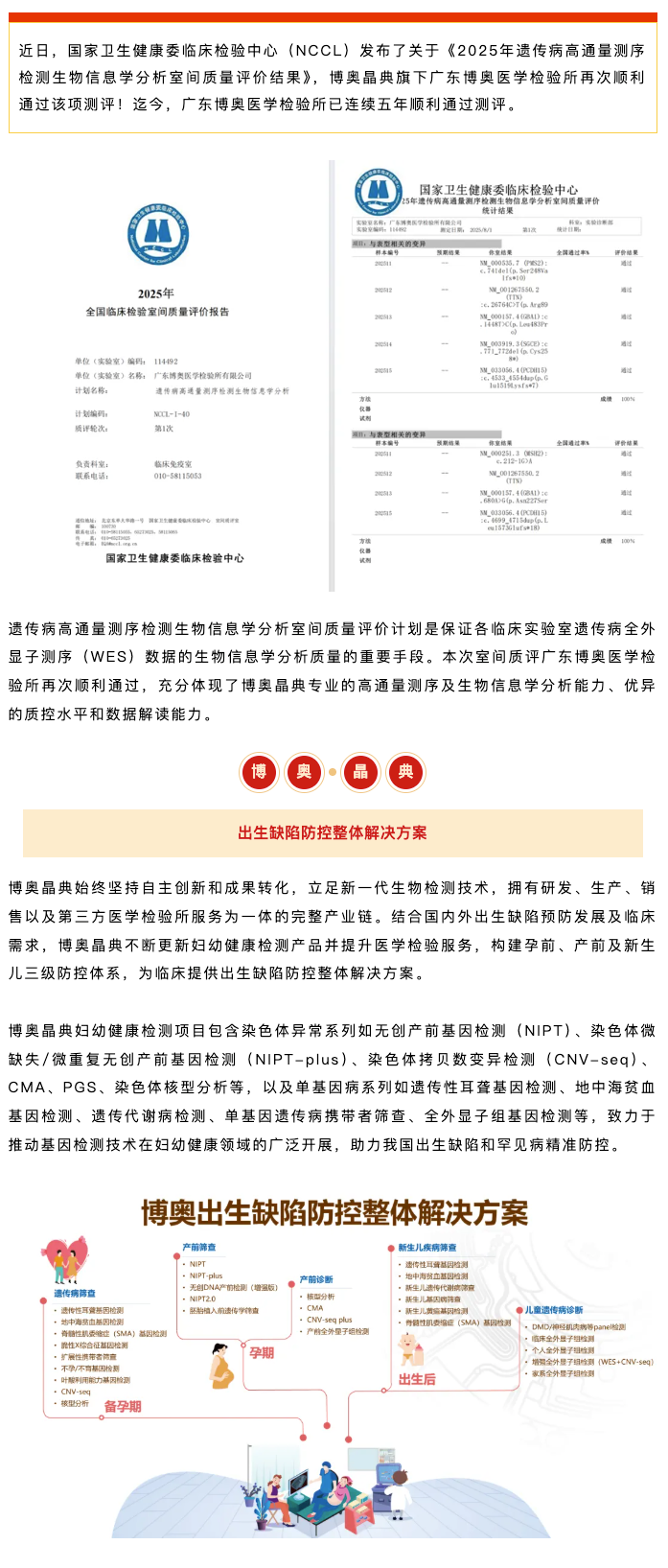 質(zhì)量捷報(bào) | 博奧晶典旗下檢驗(yàn)所滿分通過2025年NCCL遺傳病高通量測(cè)序檢測(cè)生物信息學(xué)分析室間質(zhì)評(píng)