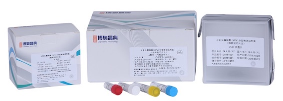 采用多重不對(duì)稱PCR結(jié)合通用芯片(Tag array)的技術(shù)對(duì)常見的HPV病毒進(jìn)行檢測和分型。