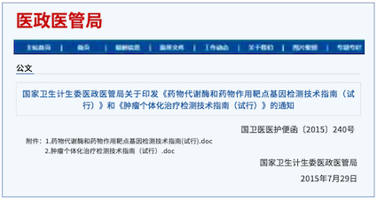 2015年7月31日,國家衛(wèi)生計生委醫(yī)政醫(yī)管局印發(fā)的《藥物代謝酶和藥物作用靶點基因檢測技術指南(試行)》中,明確給出“常見藥物代謝酶和藥物作用靶點基因遺傳變異檢測結果對臨床用藥的指導建議“:根據 CYP2C19、CYP2C9、VKORC1、CYP4F2等基因的多態(tài)性檢測結果,可相應調整藥物(華法林、氯吡格雷)的給藥方案。