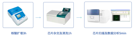 ASPUA是基于檢測基因突變的等位基因特異性PCR技術和通用微陣列芯片技術建立的。通過多重不對稱擴增獲得了大量的擴增產物,借助熱變性制備單鏈,最終通過與通用芯片雜交實現結果檢測。