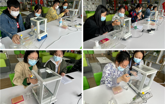 大賽采用理論知識筆試與實際操作相結合的形式展開,筆試是基礎,只有掌握扎實的實驗室規(guī)章制度和管理、生物安全、儀器操作注意事項等基礎知識,才能練就過硬的專業(yè)技能。實操部分將理論與實踐相結合,考驗實驗員移液器操作技能:分別取3次液體進行稱量,考核移液器使用的重復性、準確性及儀器操作是否規(guī)范。
